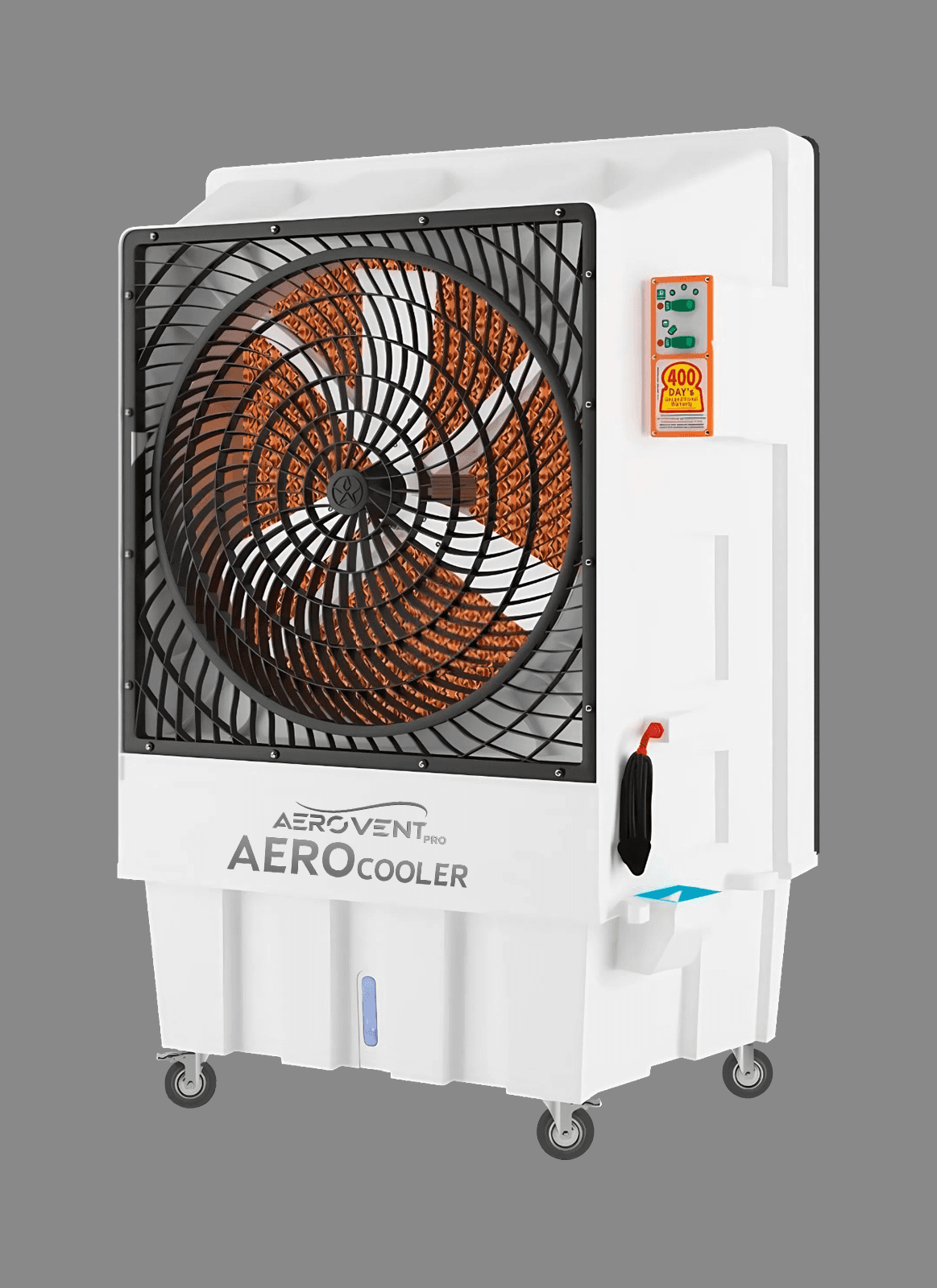 Применение: Устройство идеально для объектов с высокими тепловыми нагрузками: -Производственные цеха -Логистические комплексы (склады, ангары), -Крупные коммерческие пространства (выставочные залы, автосервисы) -Сельскохозяйственные постройки и конные фермы -Площадки для мероприятий и временные сооружения Ключевые преимущества: -Экологичность и экономичность: Потребляет в среднем 490 Вт — на 60% меньше, чем традиционные кондиционеры. Технология испарительного охлаждения снижает углеродный след и затраты на электроэнергию. -Высокая производительность: Охватывает площадь до 232 м² (цехи, склады, мастерские). Снижает температуру на 7–10°C даже при экстремальной жаре до 55°C. -Автономность: Резервуар на 90 литров обеспечивает длительную работу без дозаправки. Режим экономии воды продлевает цикл охлаждения Рекомендации по установке: -Разместите устройство возле окна или двери для оптимального притока свежего воздуха. -Обеспечьте достаточную перекрестную вентиляцию в помещении -Оставляйте вокруг устройства свободное пространство не менее 60 см. -Расположите на ровной поверхности для правильного распределения воды. -Рассмотрите возможность размещения на возвышении для более эффективного распределения воздуха в больших помещениях. Обслуживание: -Еженедельно: Контроль уровня воды, -Ежемесячно: Чистка резервуара, -Квартально: Замена охлаждающих панелей. Характеристики: Производитель: ПК Аллегри Товарный знак: Aerovent Название: AeroCooler Модель: AERO 120GW Цвет: белый Передняя панель: решетка (фиксированное направление) Ёмкость бака: 120л. Зона покрытия: 232 м² Вес: 48 кг Размеры: 1130 × 600 × 1680 мм Тип двигателя: однофазный, 3-скоростной Вращение двигателя: 900 об/мин Мощность: 490 Вт* Тип вентилятора: осевой вентилятор Шум вентилятора: 68 дБ Расход воздуха: 18000* м³/ч Размер охлаждающей подставки: 1095 × 100 × 1180 мм Обозначения: (G) Решетка - фиксированное направление GW - white GB - black (L) Жалюзи - автоматическое качание LW - white LB - black